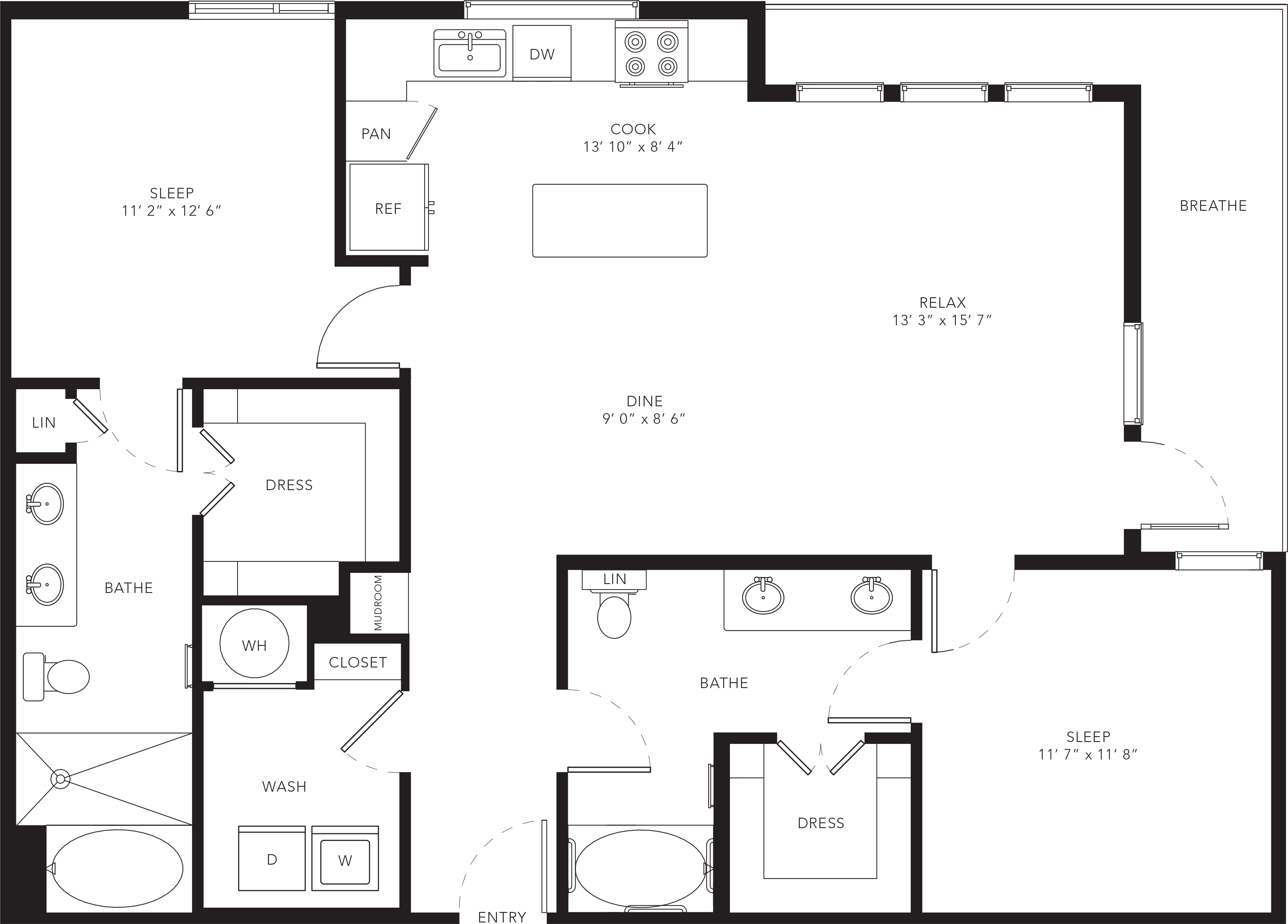 Floor plan is an artist's rendering and may not be to scale. Square footage is approximate and may vary by unit. Availability and pricing subject to change. See an office representative for details.